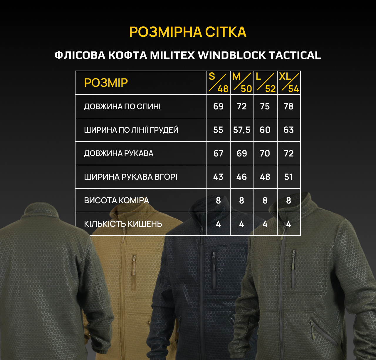 Флисовая кофта Militex Windblock Tactical – легкая флисовая кофта из линейки Militex создана как основной утеплительный слой для ношения отдельно или вместе с верхней одеждой. Структура материала Press Sots обеспечивает дополнительный комфорт: согревает или уводит лишнее тепло от тела в верхние слои одежды, поддерживая оптимальную и комфортную температуру. Это мягкая, теплая, эластичная ткань, приятная к телу, обладает водоотталкивающими свойствами, прочна, хотя при этом достаточно легка. Плотность флиса 270 г/м2. (100% полиэстер). Уникальный вид флиса отлично дополнит ваш внешний вид.